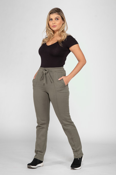 A composição do tecido usado na confecção dessa calça mistura fibras de algodão, que permite tingirmos em qualquer cor e garante toque macio, e o elastano, que dá mobilidade e conforto.