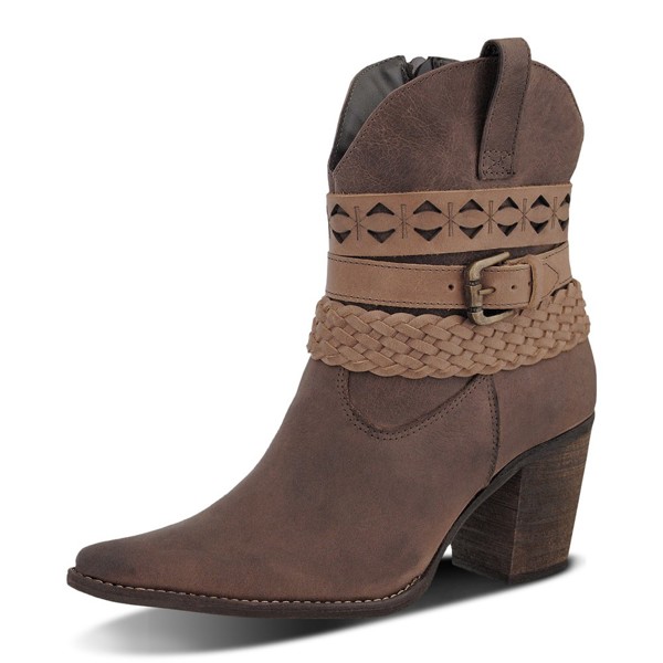 LINHA BOTAS FEMININASBota Texana Feminina Cano Médio Estilo Country confeccionada em Couro de origem Bovina (Fóssil) com acabamento natural. Indicado para mulheres exigentes e de personalidade. Monte seu look com estilo e qualidade em um só produto. Confeccionada em couro de origem bovina (Fóssil). Garanta já o seu par de Botas estilo Country em Couro. Descrição Técnica Tamanhos: 33 ao 40 Cabedal (parte externa): Couro de Origem Bovina (Fóssil)Detalhe: Tiras de Couro com Fivela de Metal na Lateral do CanoForro: Cacharrel (Tecido dublado em Espuma)Palmilha: Em Material GEL com Sistema Anti-ImpáctoSolado: Top Rubber (Borracha de Alta Resistência e Durabilidade) Fechamento: Zíper / Ajuste Com Tiras de Couro e Fivela de MetalAltura do cano: 19,7cm aproximadamente Altura do salto: 07cm aproximadamente Tamanhos: 33 ao 40 Nº 33 - Palmilha 24,6cm / Circunferência (Boca) 31cmNº 34 - Palmilha 25,0cm / Circunferência (Boca) 31cmNº 35 - Palmilha 26,0cm / Circunferência (Boca) 32cmNº 36 - Palmilha 26,5cm / Circunferência (Boca) 32cmNº 37 - Palmilha 27,2cm / Circunferência (Boca) 33cmNº 38 - Palmilha 27,7cm / Circunferência (Boca) 33cmNº 39 - Palmilha 28,4cm / Circunferência (Boca) 34cmNº 40 - Palmilha 28,9cm / Circunferência (Boca) 34cm 100% Feito-à-mão / Autêntico Couro de origem Bovina / 100% Couro (Cabedal).Garantia: Os Calçados da nossa loja possuem garantia contra defeitos de fabricação.